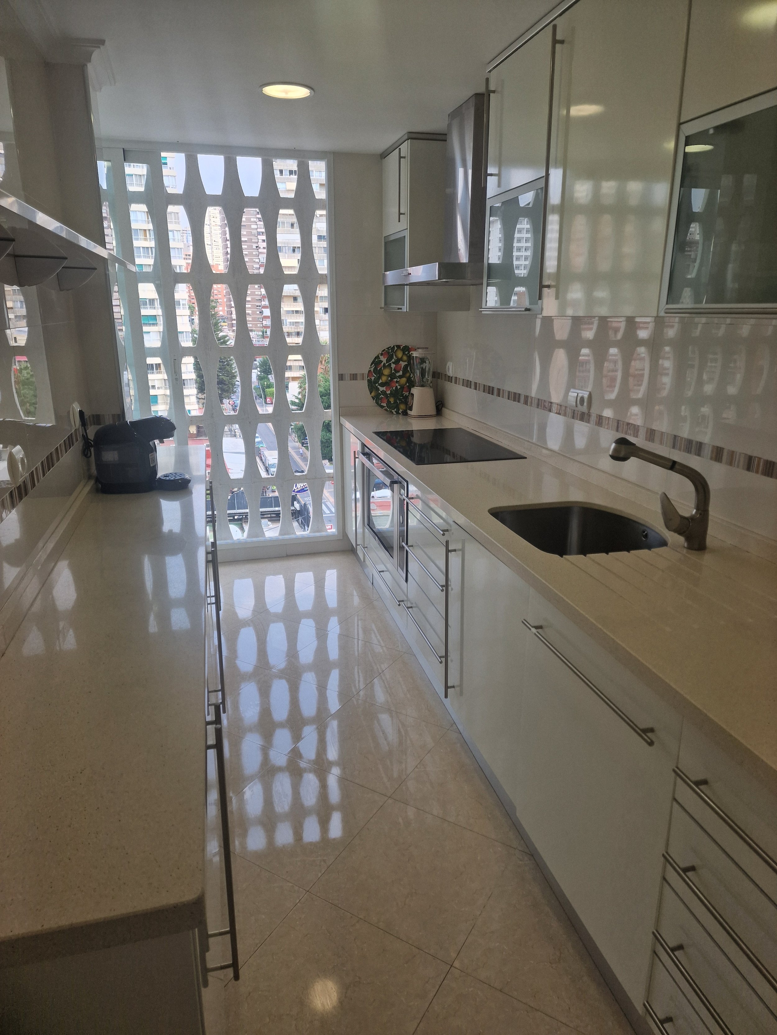 Beautiful 80m² apartment on the Mediterraneo avenue, air conditioning with 3 bedrooms, 2 bathrooms both with shower, living/dining room with sofa, equipped kitchen, terrace with sea views. Private parking for one car, The views are beautiful.