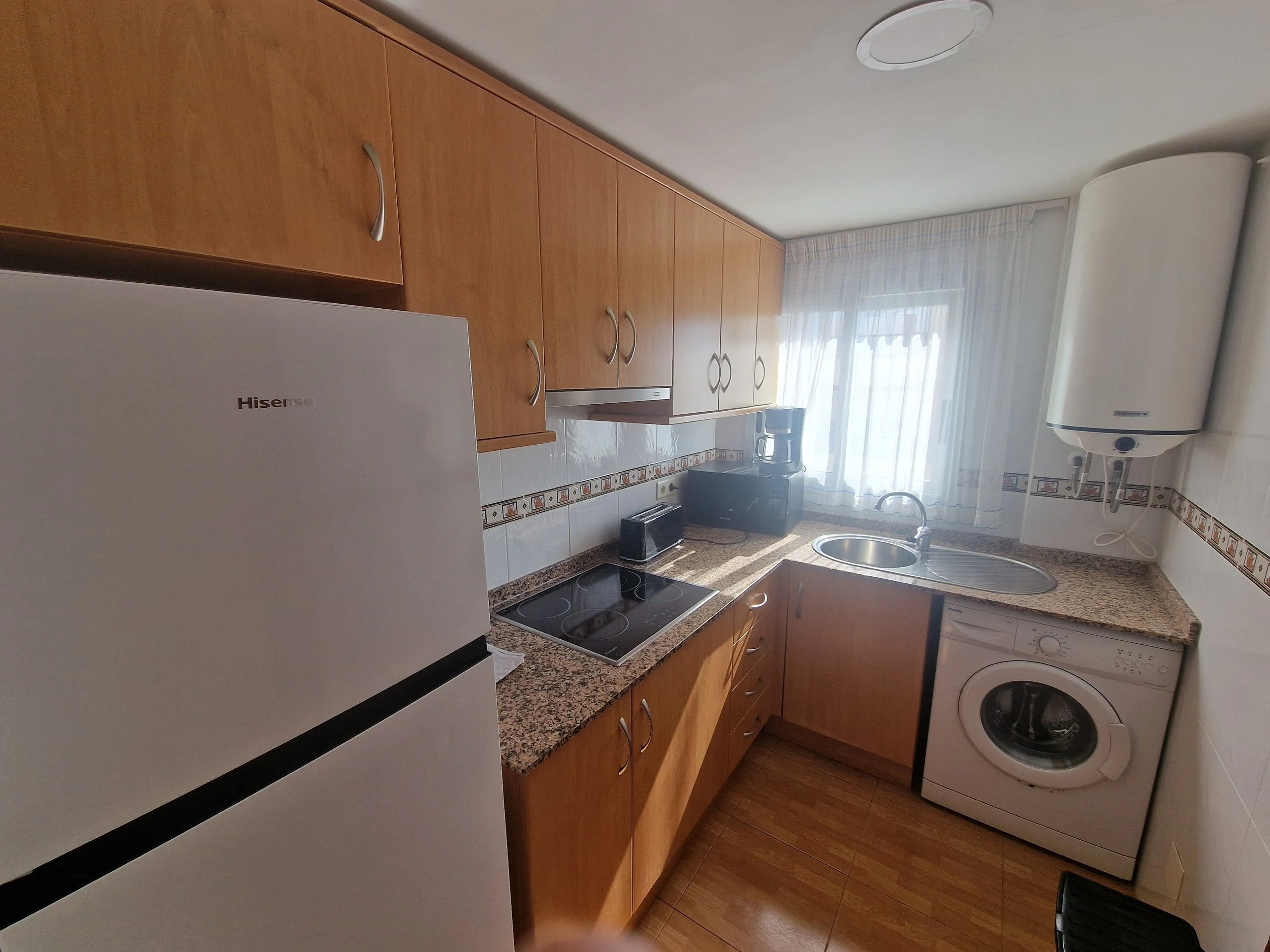 2-bedroom apartment with double bed and two single beds, on the beachfront of Levante Beach, living/dining room with double sofa bed, glazed terrace, equipped kitchen, bathroom, private garage.