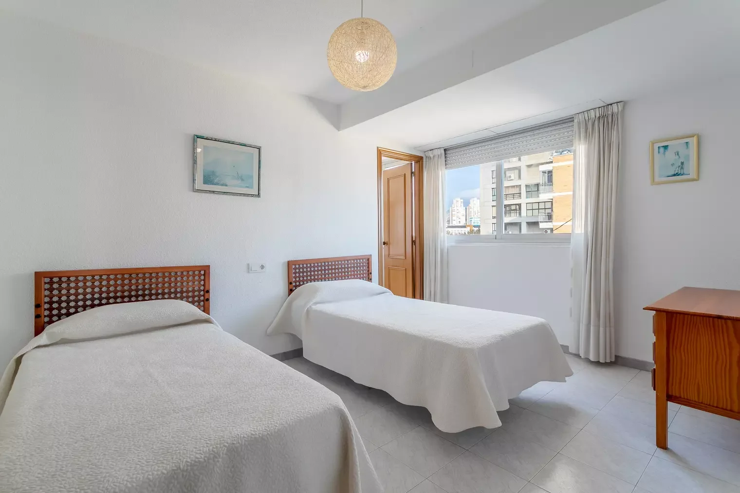 3-bedroom apartment, 130m² on the first beachfront of Levante Beach, with 6 single beds, 2 bathrooms, 1 WC, equipped kitchen, living/dining room, glazed terrace with beach views, spacious community parking and swimming pool.